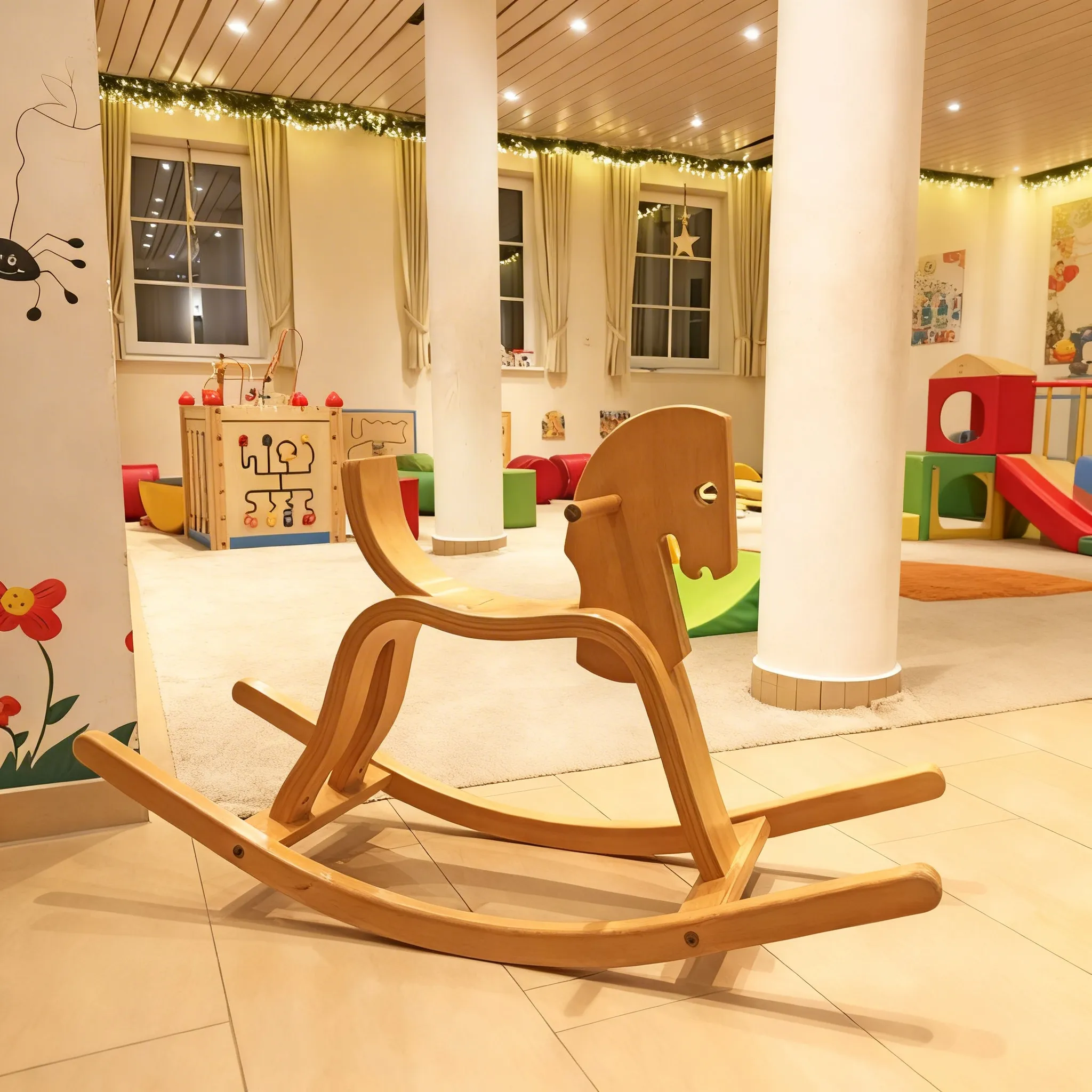 Indoor-Spielplatz „Mini & Maxi": Perfekt für Regentage. Hier können die Kinder klettern, springen, malen oder einfach ihre Energie abbauen, während die Eltern sich ein wenig zurücklehnen.